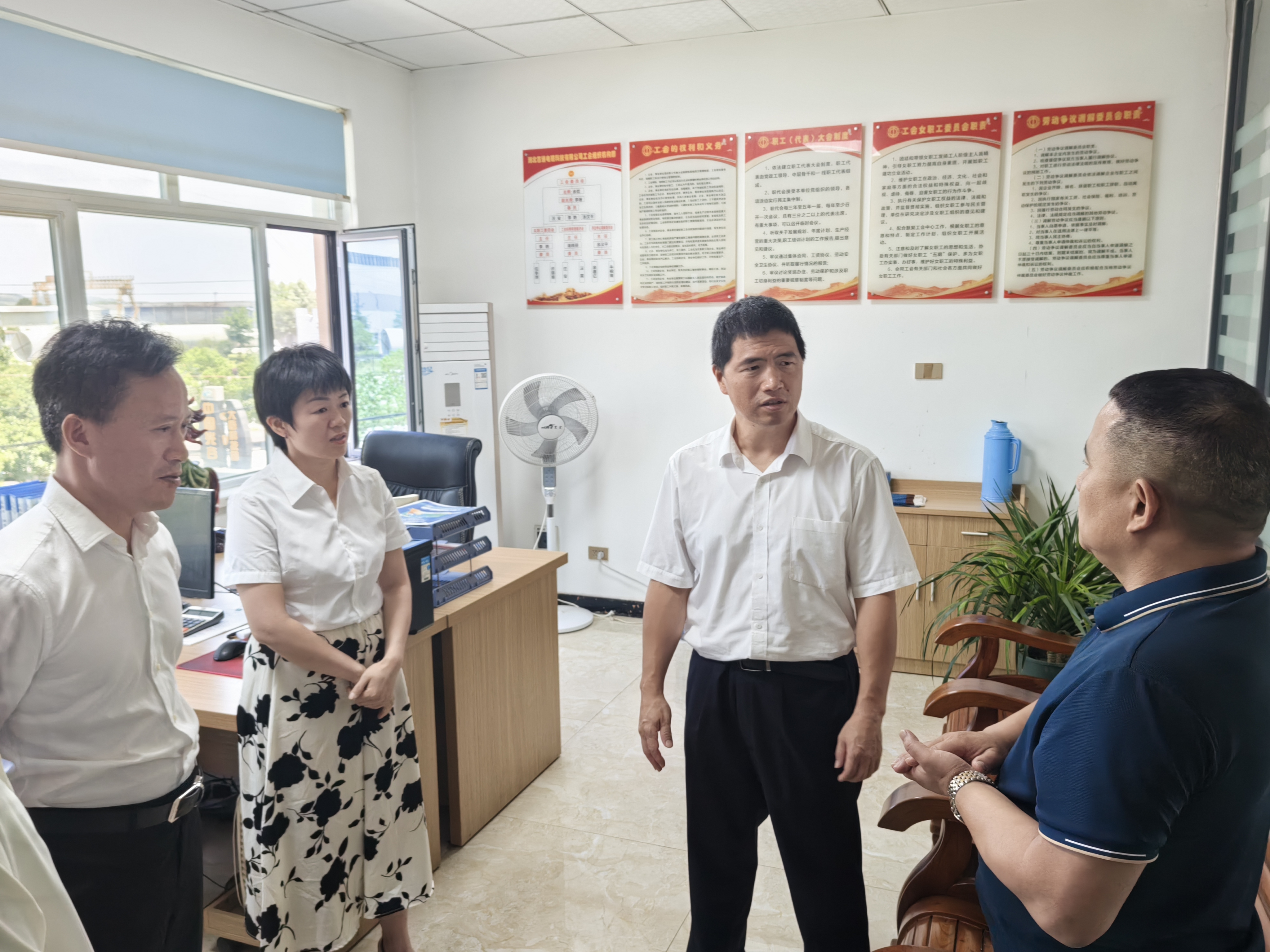 2023年7月5日上午 省、市總工會(huì)各級(jí)領(lǐng)導(dǎo)在大悟縣工會(huì)領(lǐng)導(dǎo)的陪同下,蒞臨我司開展調(diào)研工作,公司黃總接待,省總工會(huì)主席胡甲文同志對(duì)我司工會(huì)開展的集體協(xié)商工作夸獎(jiǎng)?wù)f:“做的很不錯(cuò),企業(yè)想職工之所想,把職工的權(quán)益放在實(shí)際行動(dòng)上,才能更穩(wěn)定更快速的發(fā)展。”并參觀了工會(huì)辦公室,公司宣傳欄,職工書屋、乒乓球、羽毛球、娛樂KTV室等。