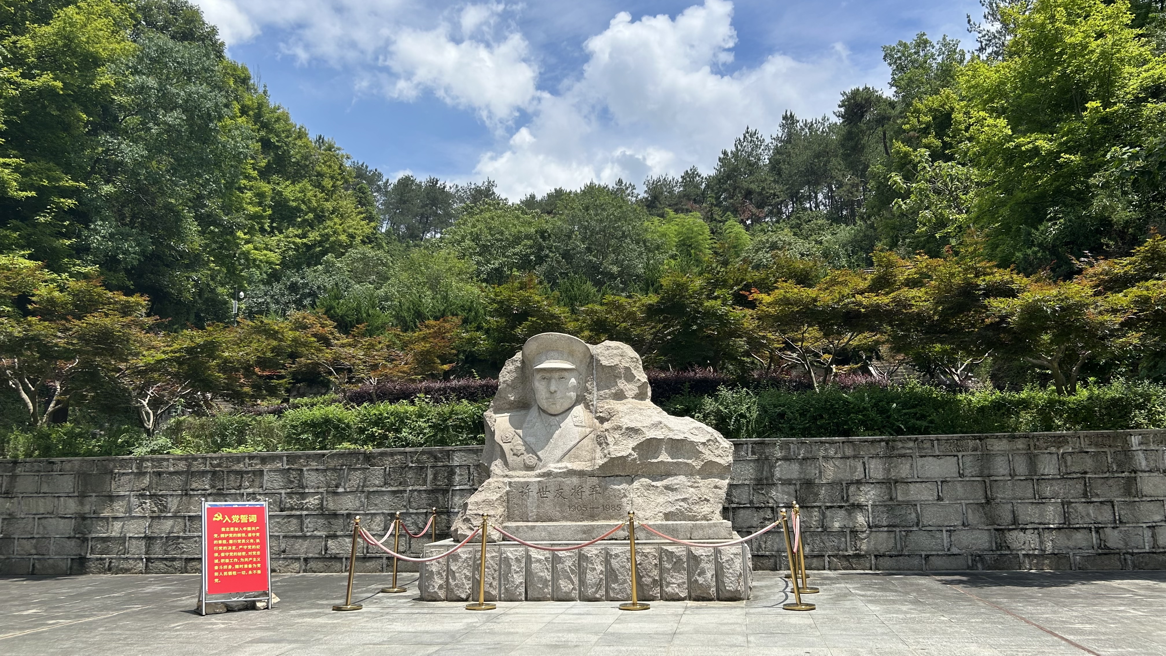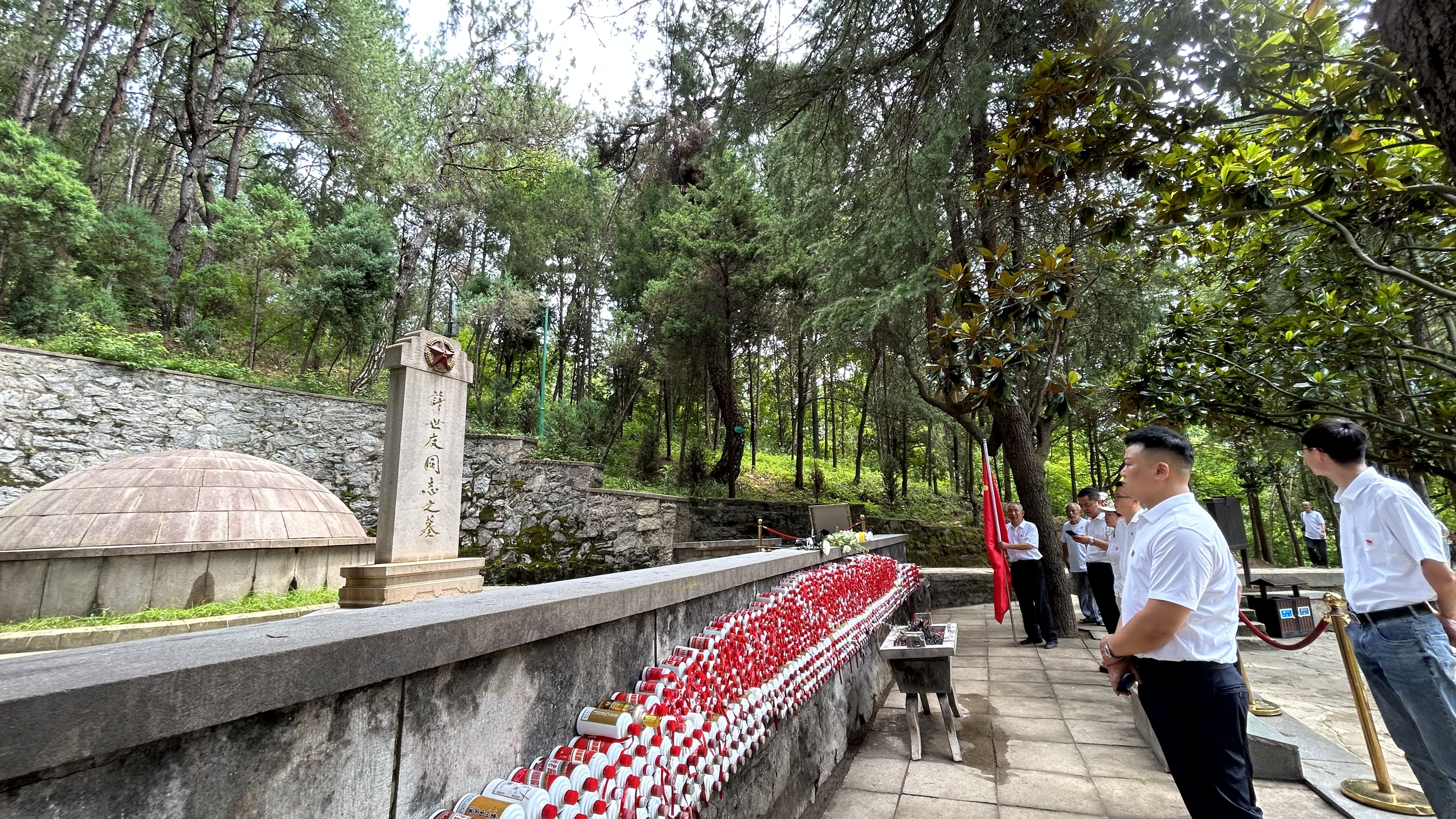 11:30,在許世友將軍墓前舉行敬獻花籃儀式,全體黨員向?qū)④娔谷瞎?,表達對革命先烈的深切緬懷和崇高敬意。